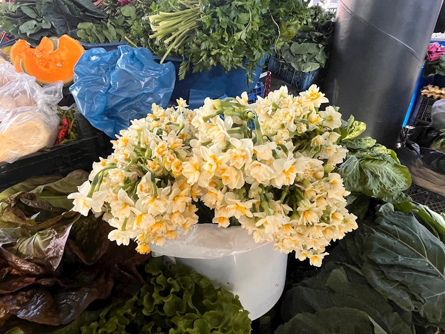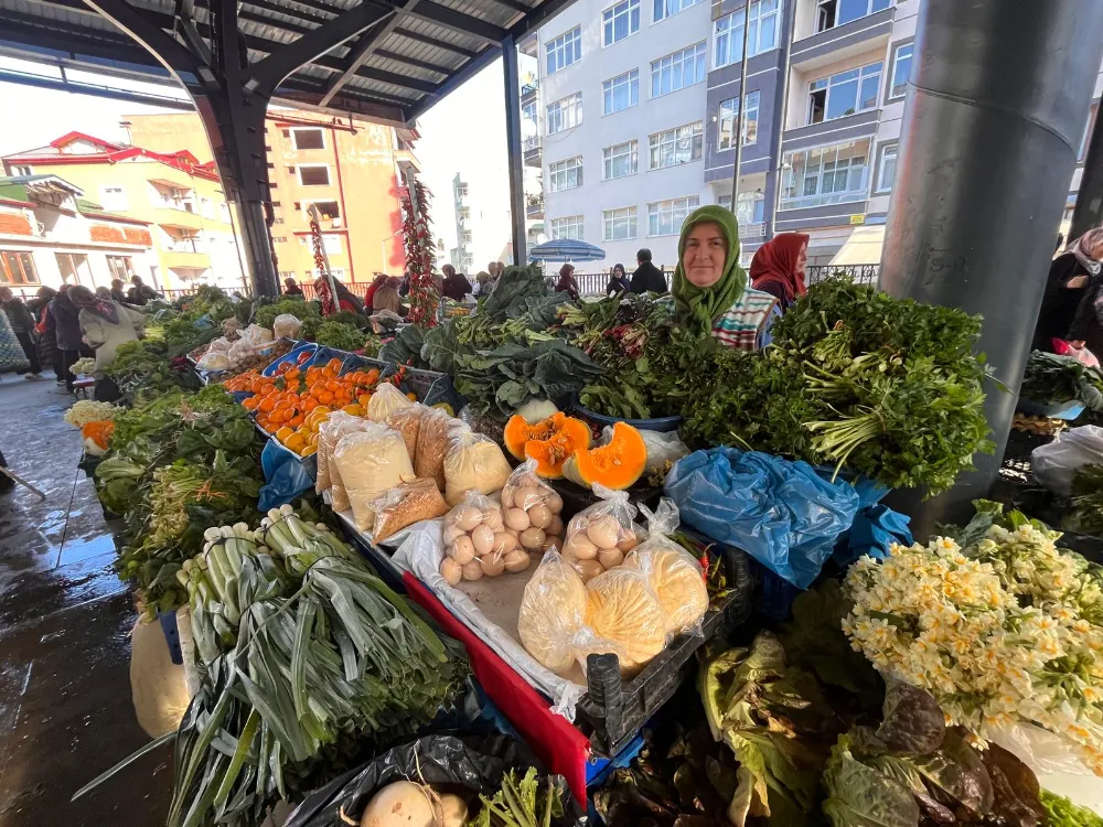 Pazar, kış sebzelerinin yanı sıra, kokusu ve görüntüsüyle dikkat çeken nergis çiçeklerine de ev sahipliği yapıyor. Bir demeti 50 liradan satılan nergis çiçeği, pazara gelenlerin ilgisini topluyor.