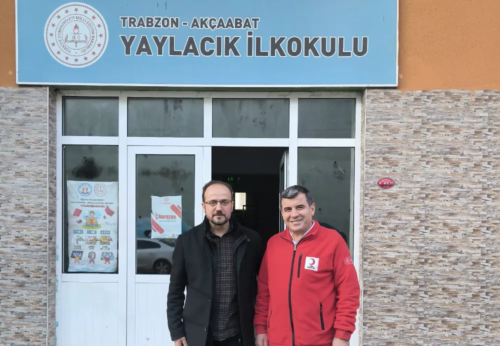 Türk Kızılay Akçaabat Şube Başkanı Saadettin Balcı, Yaylacık İlkokulu Müdürü Eyüp Şirin’i ziyaret etti.