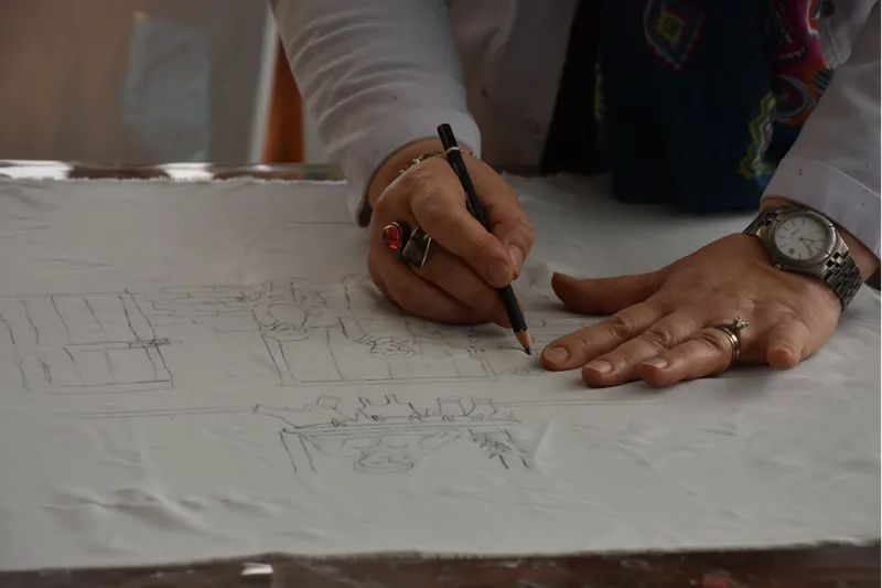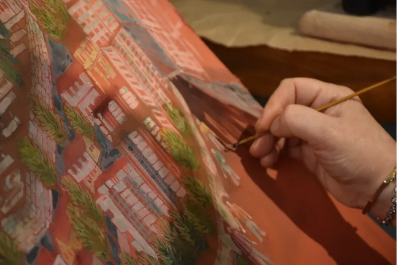 Eroğlu, sürecin uzun, meşakkatli ve heyecan verici bir yolculuk olduğuna değinerek, "Aşama aşama, nakış nakış işliyorsunuz. Taslak süreciyle başlıyor ve daha sonra ipek üzerine aktarıyorum. Benim tuvalim ipek. Tuval bezim ipek olduğu için daha hassas davranmak zorundayım." diye konuştu.