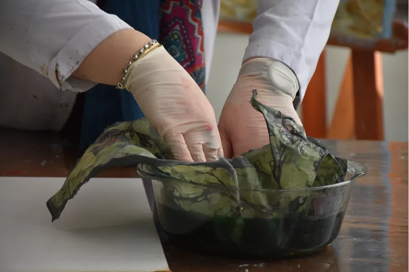 Doğa, çevre, hayvan gibi yaşama dair tasarımların yapılabildiği batik sanatında kök boya ve balmumunun kullanılmasıyla renklerin birbirine karışması da engelleniyor.