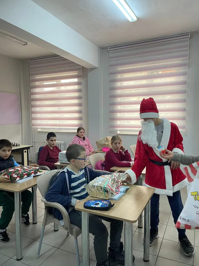 Kostümüyle birlikte gelen hediye çuvalını teslim alan 5. Sınıf öğrencisi Mehmet Emin Yavuz, temsili bir Noel Baba olarak sınıf arkadaşlarının hediyelerini bizzat kendisi dağıttı. Arkadaşlarının ismini okuyarak paketlerini teslim eden öğrencinin heyecanı ve diğer çocukların sevinci görülmeye değerdi. Bol bol fotoğraf ve video ile ölümsüzleştirilen bu anlar hem öğretmenlerimize hem de öğrencilerimize keyifli bir gün yaşattı.