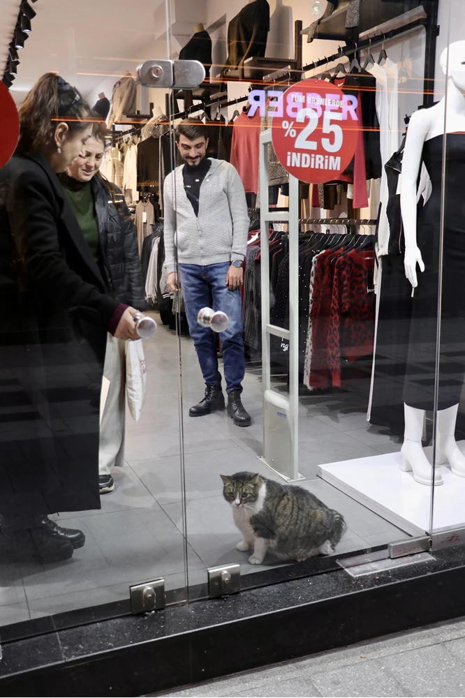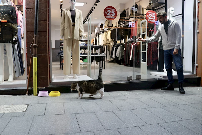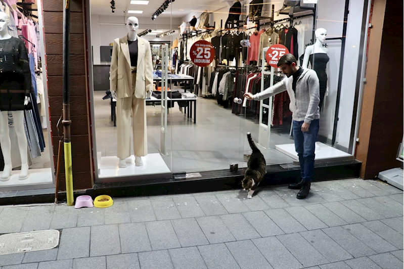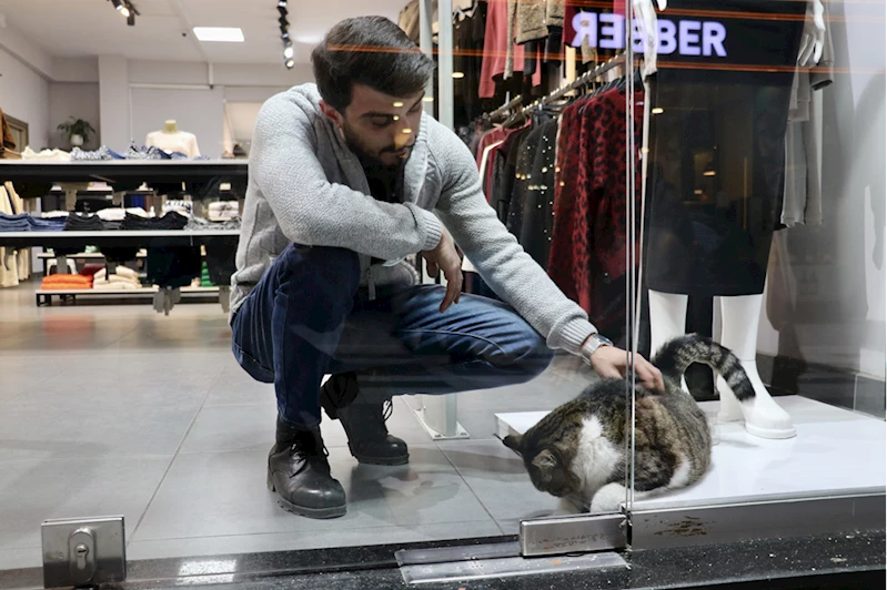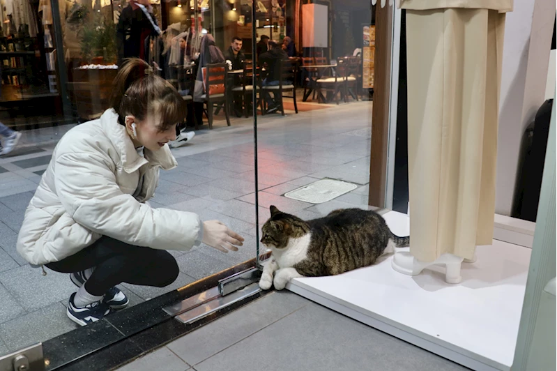 Uzun Sokak'ta butik işleten Gurur Nuhoğlu, AA muhabirine, kedinin her sabah kendisiyle beraber iş yerine geldiğini söyledi.