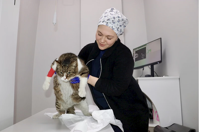 Kedinin bakım ve tedavisini yapan Veteriner Hekim Uğur Cem Tahmaz ise yaklaşık 7 yaşındaki kedinin sağlık durumunun genel olarak iyi olduğunu söyledi.