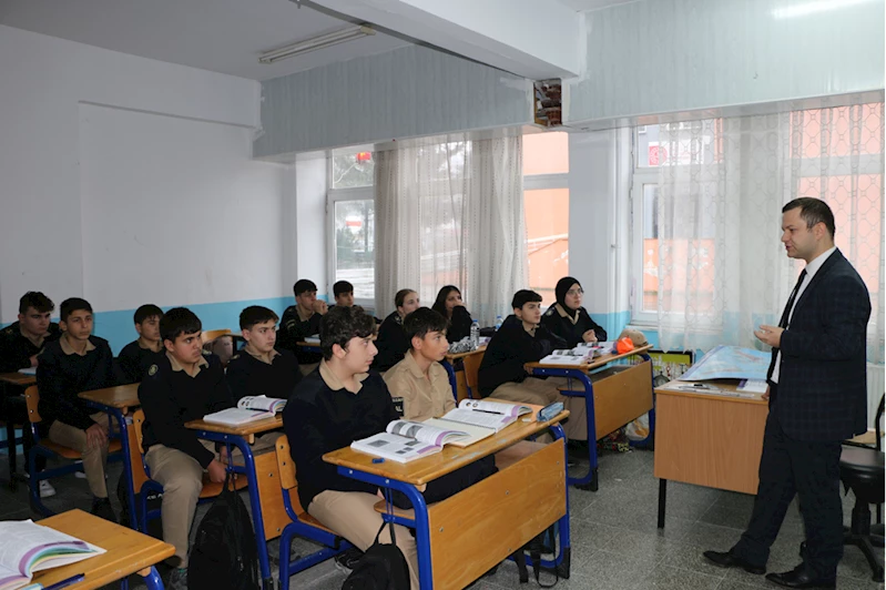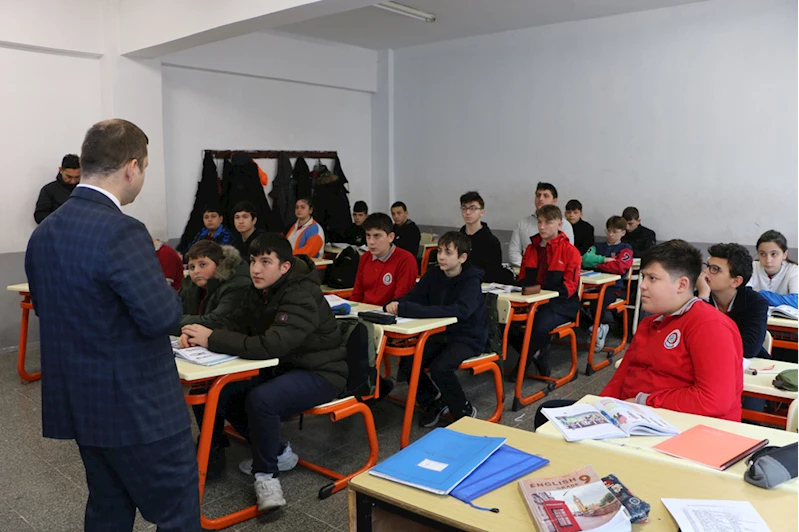 Buluşmada öğrenci ve öğretmenlerle sohbet eden Kaymakam Demirer, okulda yürütülen çalışmalar hakkında Okul Müdürü Bülent Saka'dan bilgi aldı.
