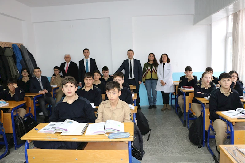 İlçe Milli Eğitim Müdürü İdris Karahasanoğlu'nun da katıldığı ziyarette Demirer, Bilişim Teknolojileri ve Denizcilik Bölümünde eğitim gören öğrencilerle buluştu.