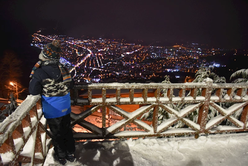 Boztepe'ye gelenler karın tadını çıkardı, manzara eşliğinde hatıra fotoğrafı çektirdi.