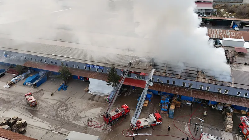 İş yerlerinde hasara yol açan yangının çıkış nedeninin belirlenmesi amacıyla çalışma başlatıldı.