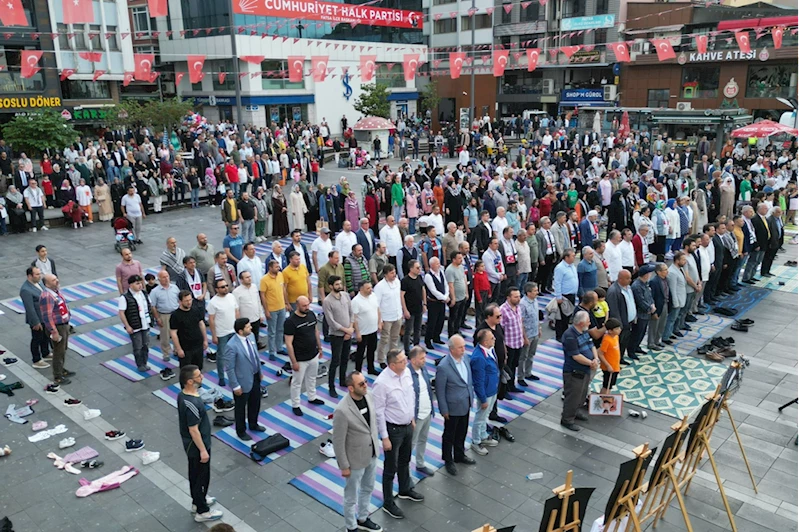 Filistin'de yaşanan insanlık dramına dikkati çekmek için Cumhuriyet Meydanı'nda oturarak sessiz eylem yapan vatandaşlar Filistin’de hayatını kaybedenler için gıyabi cenaze namazı kıldı.