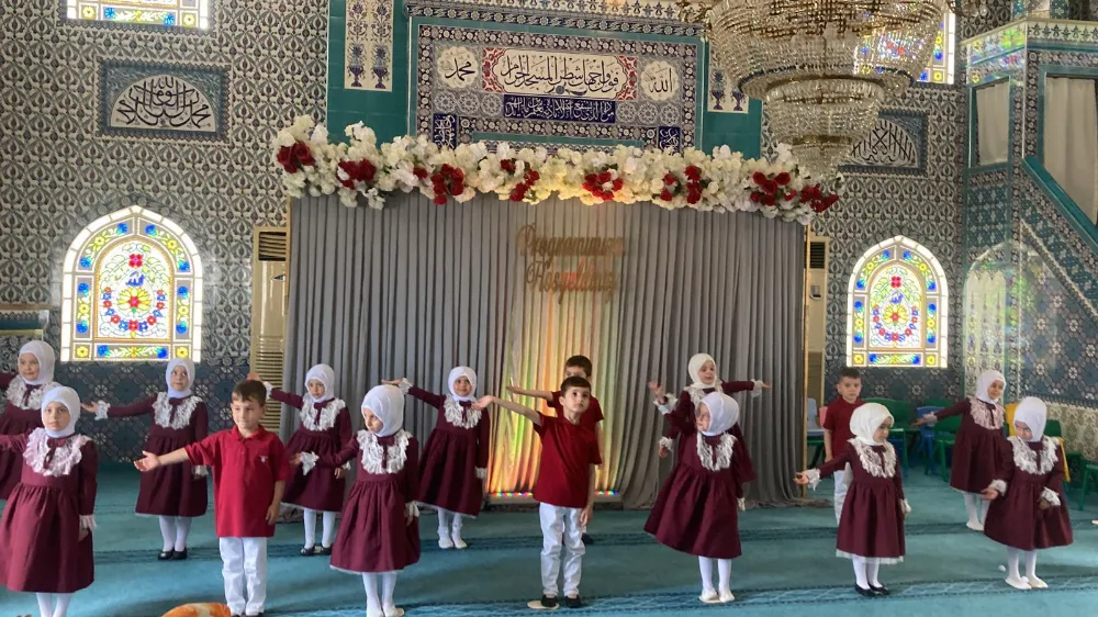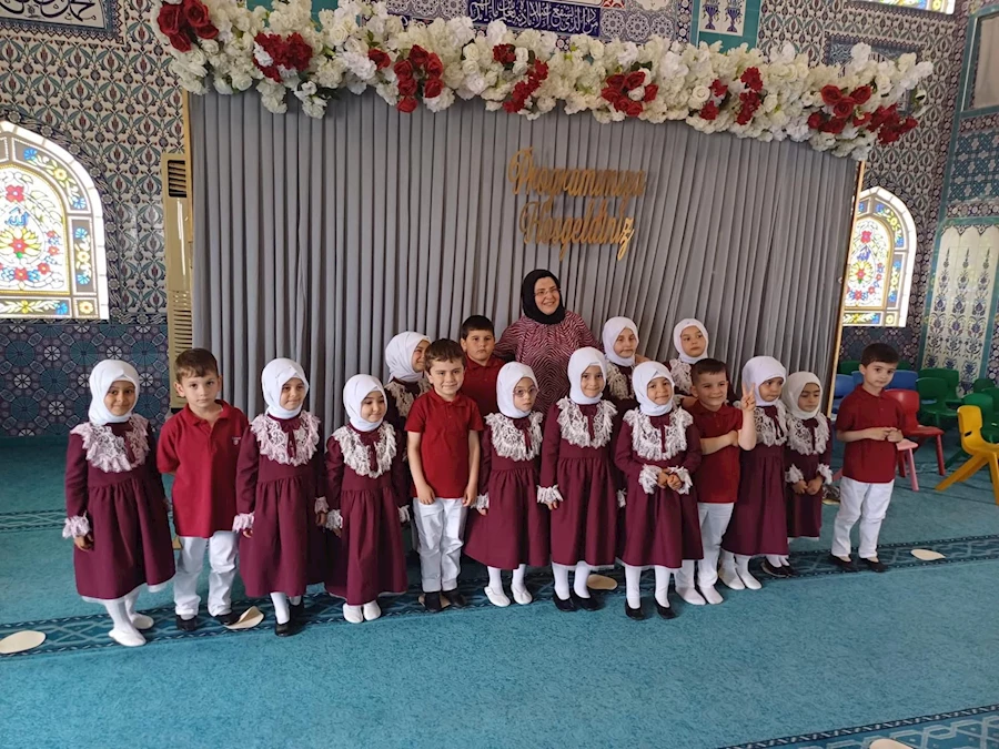 Emine Abanoz Usta’nın eğitim verdiği 20 öğrencinin katılımı ile gerçekleştirilen programa salat-ı ümmiye ile içeri alınan öğrencilerin Zeynep Mine Gültekin nezaretinde İstiklâl Marşı’nı okumalarıyla başlandı.