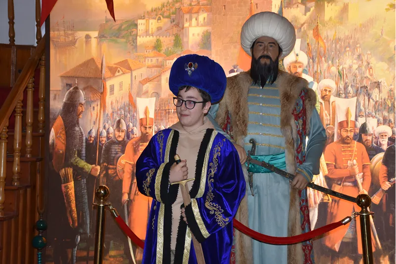Burada 36 padişahı, kostümleri ve kişisel özelliklerini anlatan materyallerle tanıma fırsatı bulan öğrenciler, aynı zamanda padişah kostümleri giyerek adeta tarihe yolculuk yapıyor.