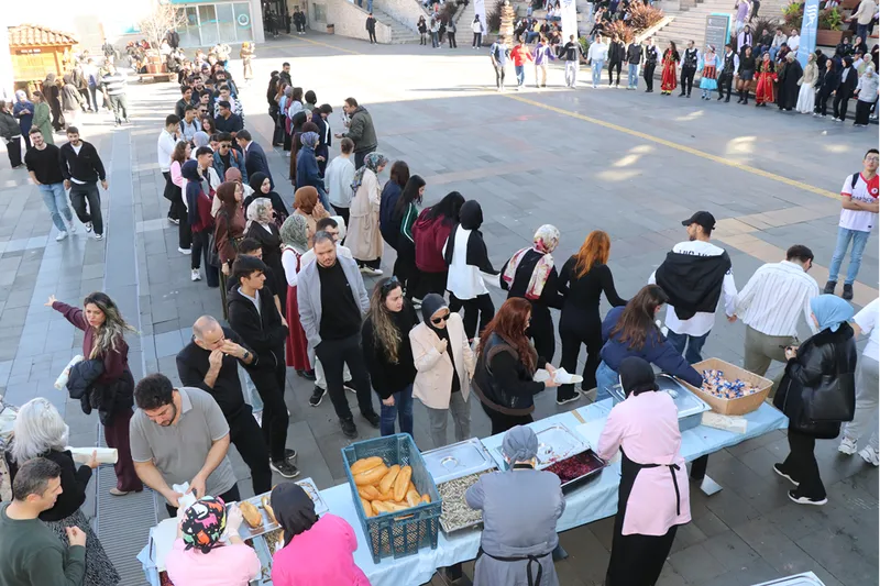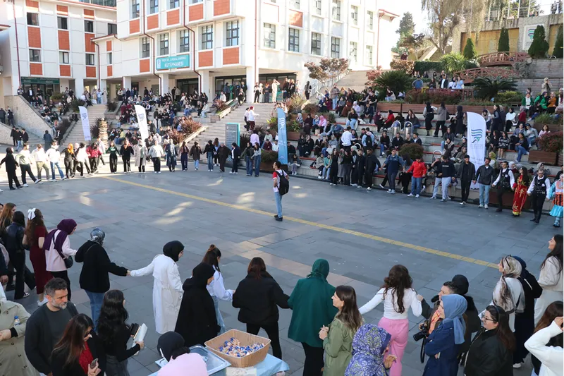 Kongre ve Kültür Merkezi önünde gerçekleşen şenliğe katılan öğrenciler, tulum eşliğinde horon tepip, ikram edilen hamsilerin tadına baktı.