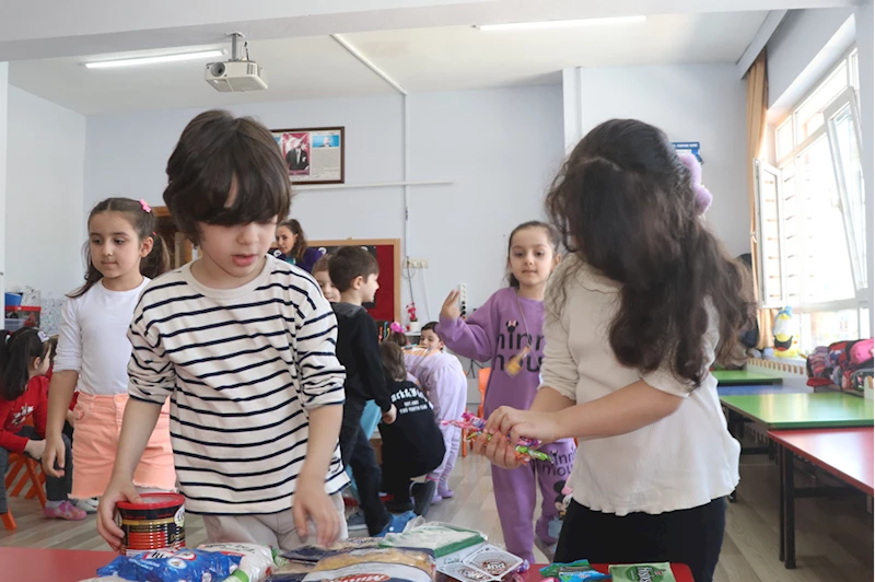 RİZE (AA) - Rize'de anaokulu öğrencileri, öğretmen ve velilerin yardımıyla ihtiyaç sahipleri için ramazan kolisi hazırladı.