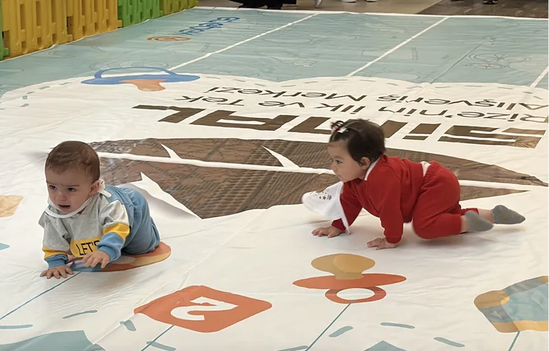 Başlangıç çizgisinden emekleyerek anne ve babalarına ulaşmaya çalışan bebekler, ailelerinin gösterdiği oyuncak, biberon ve telefonla varış alanına ilerlemeye çalıştı.