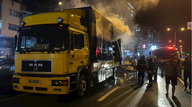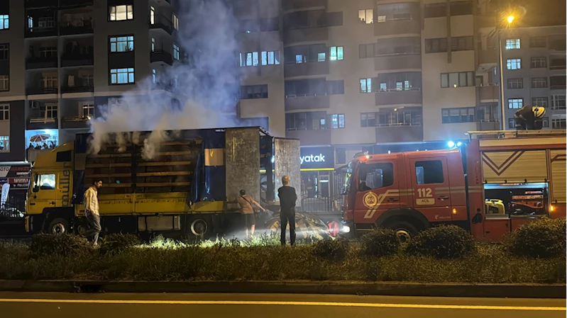 Karadeniz Sahil Yolu'nda Artvin yönüne giden Giorgi Kedelidze idaresindeki Gürcistan plakalı karton yüklü tırın dorsesinde henüz belirlenemeyen nedenle yangın çıktı.