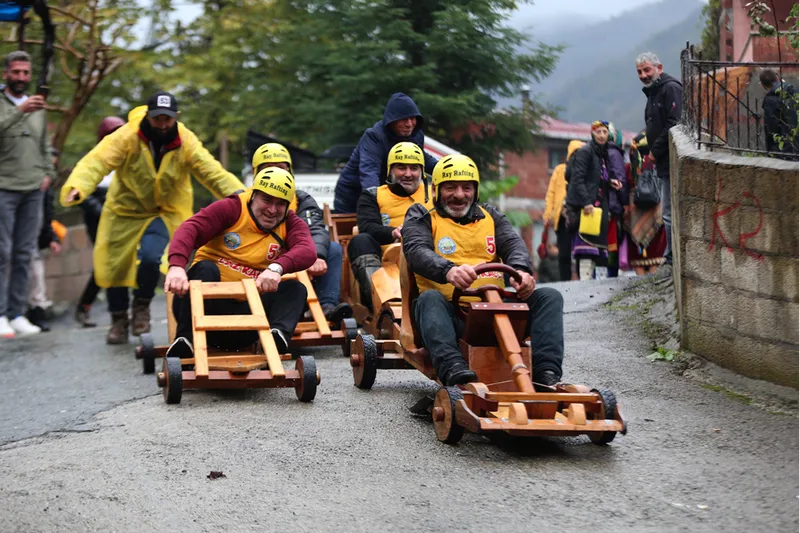 RİZE (AA) - Rize'nin Çamlıhemşin ilçesine bağlı Dikkaya köyünde "Laz Ralli Tahta Araba Yarışları"nın 15'incisi düzenlendi.