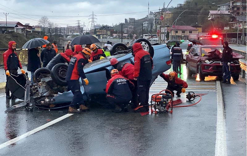 Güneysu yönüne giden Mehmet Ali Tercan idaresindeki 53 AB 422 plakalı otomobil, aynı yönde ilerleyen O.D. yönetimindeki 61 NL 112 plakalı cipe, daha sonra da aydınlatma direğine çarparak takla attı.