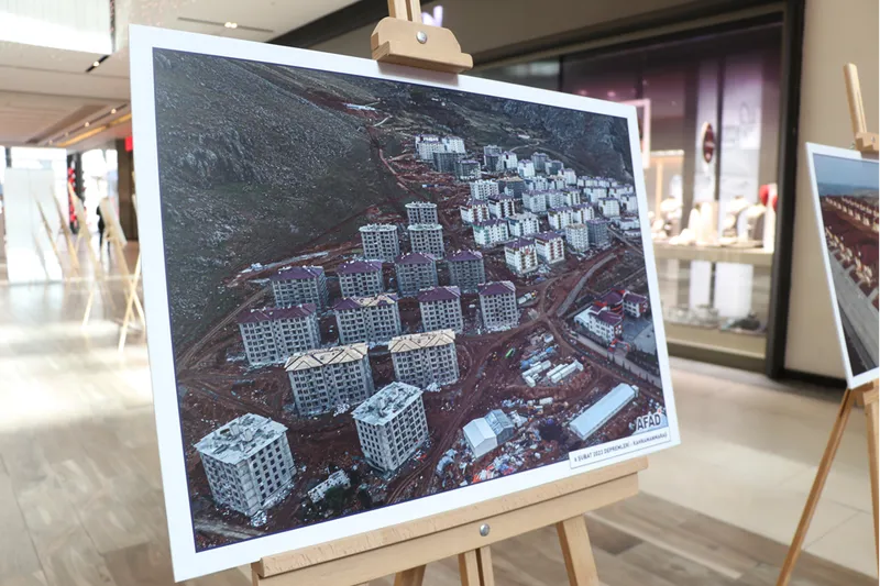 Kahramanmaraş merkezli depremler ve sonrasında yaşananlara dair fotoğrafların yer aldığı sergiyi gezenlere, süreçle ilgili bilgilendirmeler yapıldı.