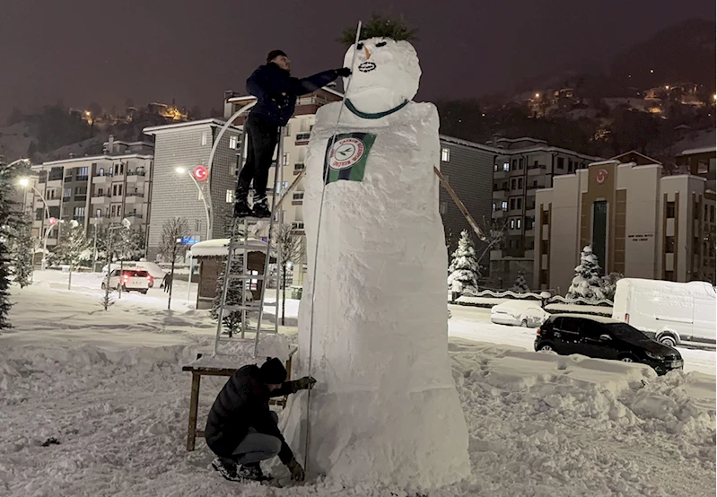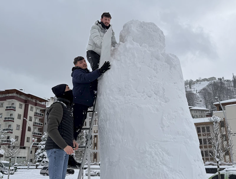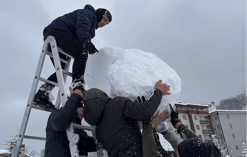 RİZE (AA) - Rize'nin Güneysu ilçesinde etkili olan kar yağışını fırsat bilen gençler, 4,5 metre boyunda kardan adam yaptı.