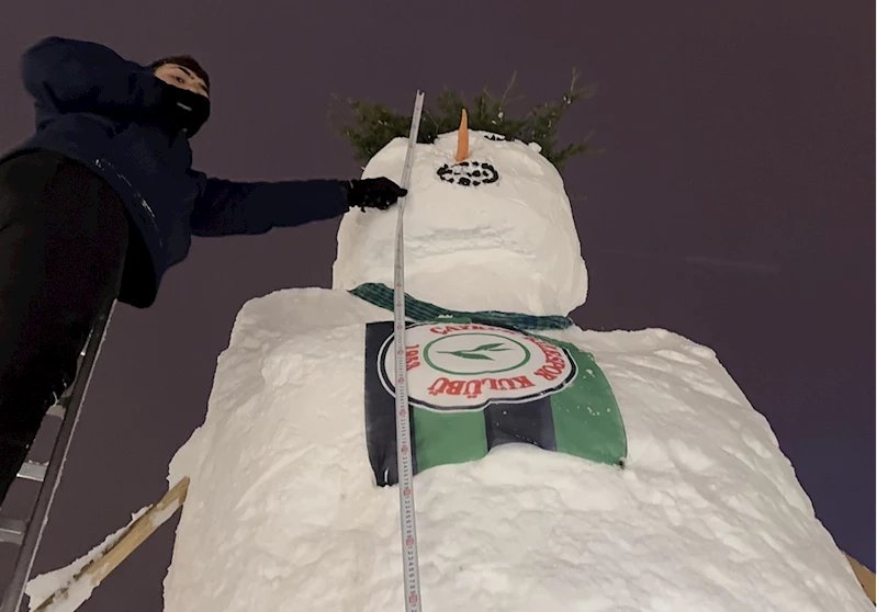 Yaklaşık 7 saatlik çalışmanın ardından 4,5 metre uzunluğunda kardan adam yapıldı. Gençler daha sonra, kar yağışı altında kardan adamın etrafında horon tepti.