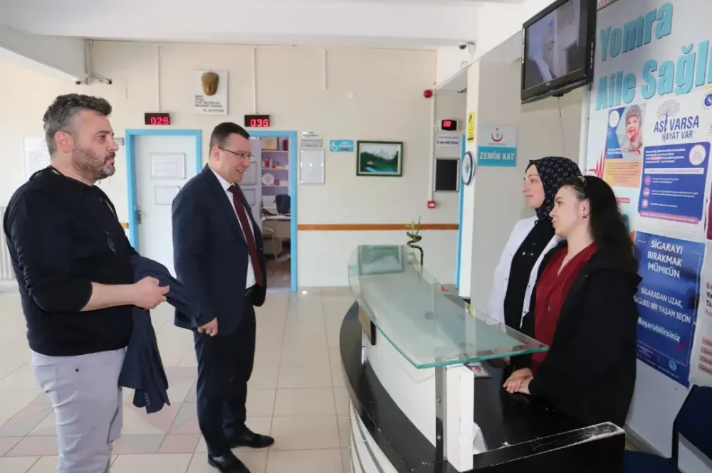 Trabzon İl Sağlık Müdürü Dr. Hakan Usta, ilçe sağlık hizmetlerini yerinde incelemek üzere Yomra İlçe Sağlık Müdürlüğü'nü ziyaret etti. Ziyaret kapsamında, İlçe Sağlık Müdürü Dr. Gültekin Hacısalihoğlu'ndan müdürlüğün yürüttüğü çalışmalar hakkında detaylı bilgi aldı.