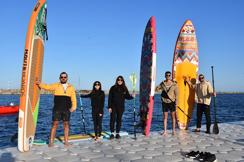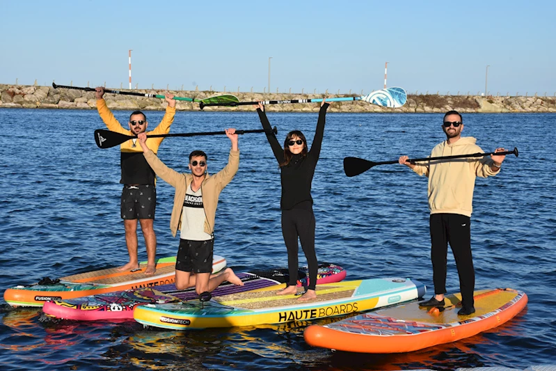 Sürücülük de yapan paramedik 29 yaşındaki Tuba Saka ise "Boş zamanlarımızda buraya gelip sup yapıyoruz. Bütün stresimizi denizde atıyoruz. Nöbet aralarında geliyoruz. 6 aydır bu sporla ilgileniyorum, çok zevkli." dedi.