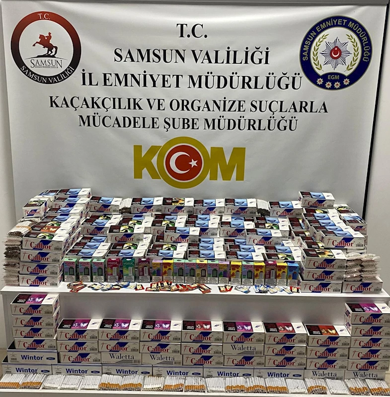 Ekipler, iki adreste yaptıkları aramada 33 bin 440 doldurulmuş, 7 bin 800 sahte bandrollü boş makaron, 200 TAPDK bandrolü ile 19 gümrük kaçağı elektronik sigara ele geçirdi.