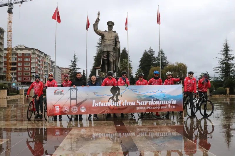 Türkiye Bisiklet Federasyonu ile 15 Temmuz Derneğince gerçekleştirilen anma sürüşüne katılan ve dün kente ulaşan 13 bisikletli için Valilik önünde uğurlama töreni yapıldı.