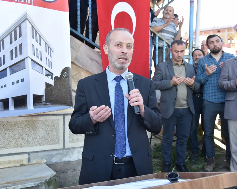Espiye Müftü Vekili Ahmet Yılmaz'ın dua etmesinin ardından, cami bahçesindeki alana inşa edilecek binanın temeli atıldı.