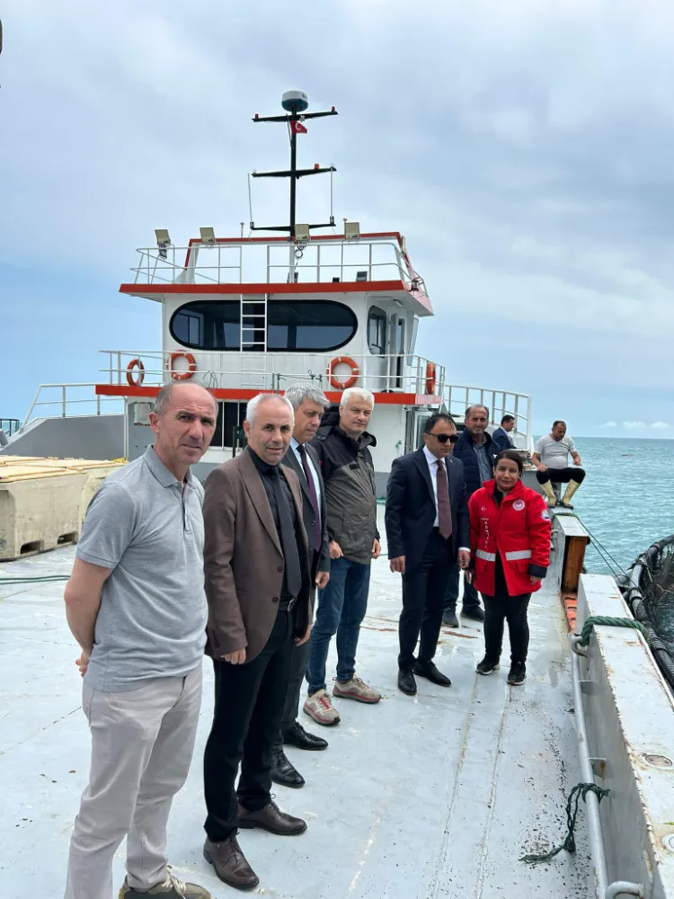 Akçaabat Kaymakamı Yusuf Cankatar, beraberinde İlçe Tarım ve Orman Müdürü Erkan Ayaz, İlçe Yazı İşleri Müdürü Ali Baş ve Gençlik ve Spor İlçe Müdürü Engin Uzun ile birlikte, su ürünleri kontrolleri kapsamında İlçemiz Darıca mahallesi açıklarında bulunan su ürünleri yetiştiricilik tesisini ziyaret etti.