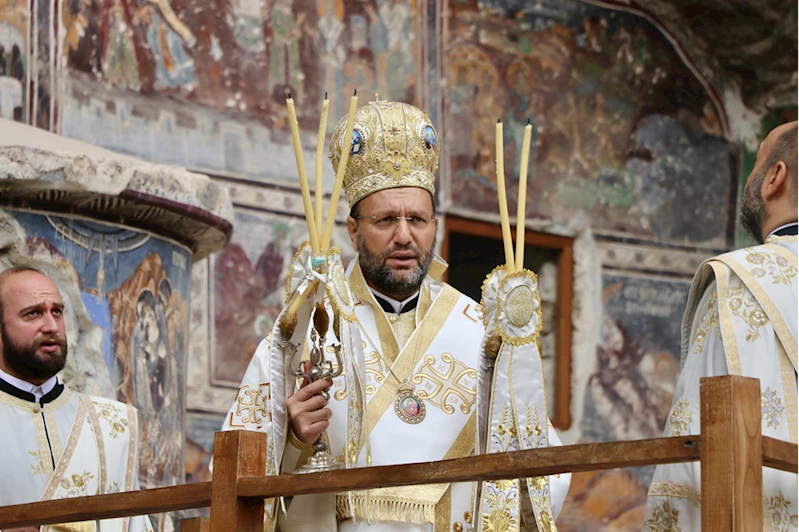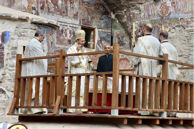Türkiye'nin önemli inanç merkezlerinden Sümela Manastırı'nda 11'incisi gerçekleştirilen ayini, Gelibolu Metropolitine bağlı Patrik Stefanos Dinidis yönetti.