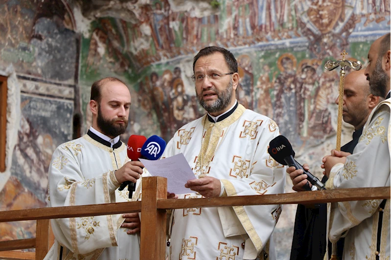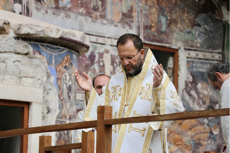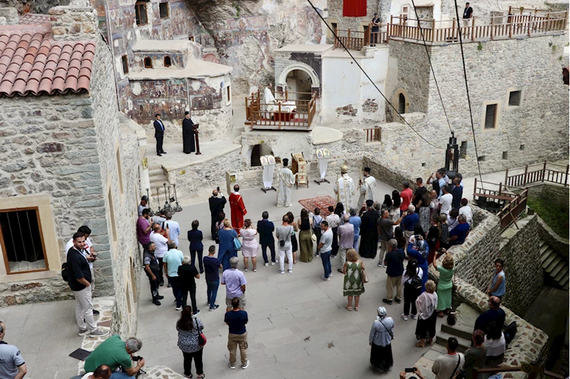TRABZON (AA) - Trabzon'un Maçka ilçesinde, Karadağ'ın Altındere Vadisi'ne bakan eteğindeki Sümela Manastırı'nda ayin yapıldı.