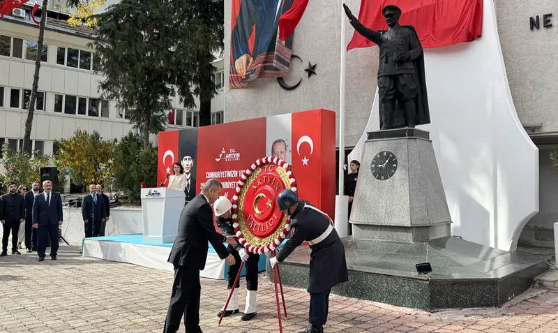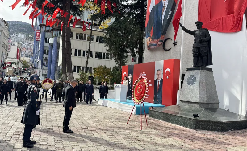 Valilik önündeki törende Vali Aydın Baruş, İl Garnizon Komutanı Albay Engin Kara ve Belediye Başkanı Vedat Soner Başer, Atatürk Anıtı'na çelenk sundu.