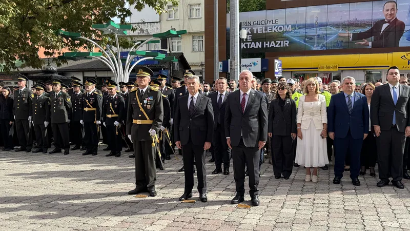 Tören, Vali Mehmet Fatih Serdengeçti, Belediye Başkanı Fuat Köse ve Garnizon Komutanı İkmal Albay İbrahim Erdinç Yalçın'ın Atatürk Anıtı'na çelenk sunmasıyla başladı.