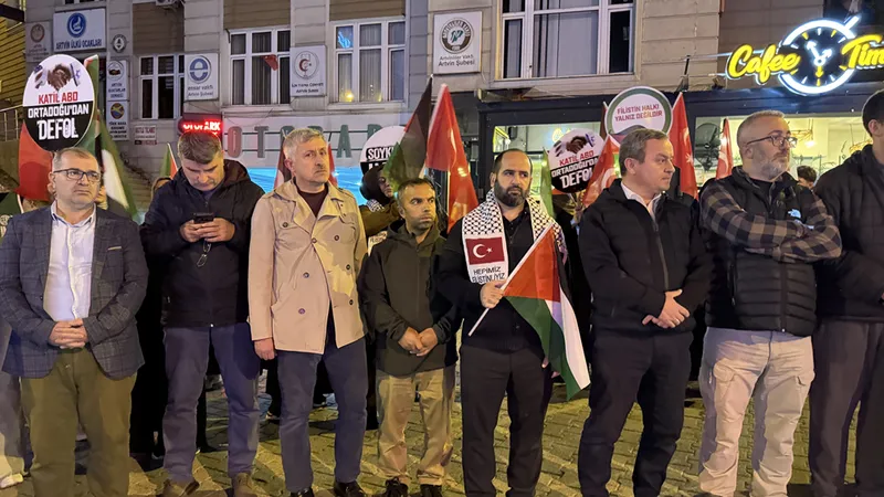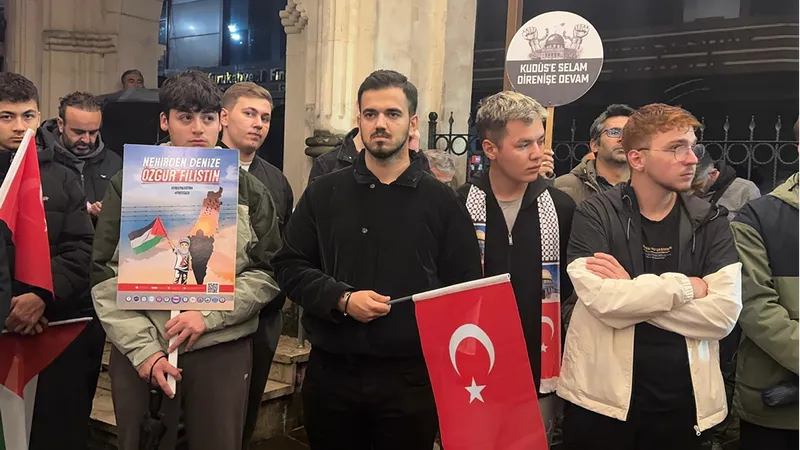 Katılımcılar, ellerinde Türk ve Filistin bayrakları ile çeşitli pankartlar taşıdı.