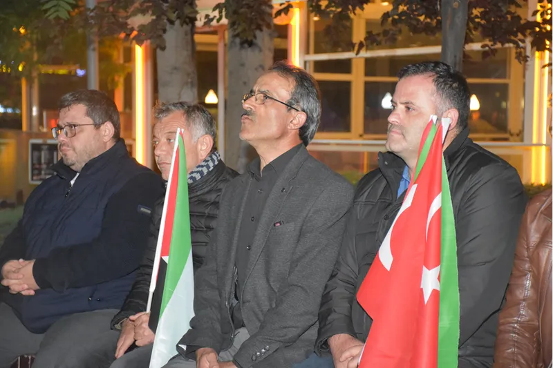 Grup adına basın açıklaması yapan İlhami Polat, Gazze'ye insani yardım ulaştırmak için yola çıkan filoya İsrail'in uluslararası sularda barbarca saldırdığını anlatarak, "Sivil gemilere müdahale edildi. Yardım taşıyan gönüllüler hedef alındı. Bu sadece bir saldırı değil, hukukun, vicdanın ve insanlık onurunun açıkça çiğnenmesidir." dedi.