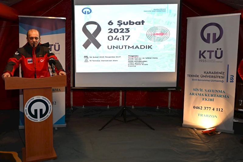 "6 Şubat: Hafızamızdaki İzler" başlıklı videonun da gösterildiği programa, Trabzon AFAD Müdürü Mustafa Hüseyinpaşaoğlu, Rektör Yardımcısı Prof. Dr. Bünyamin Er ve Prof. Dr. Ali Temiz, Genel Sekreter Vekili Prof. Dr. Cemil Rakıcı, KTÜ Arama Kurtarma Ekibi, Kızılay temsilcileri, UMKE ve AFAD personeli ile akademisyenler ve davetliler katıldı.