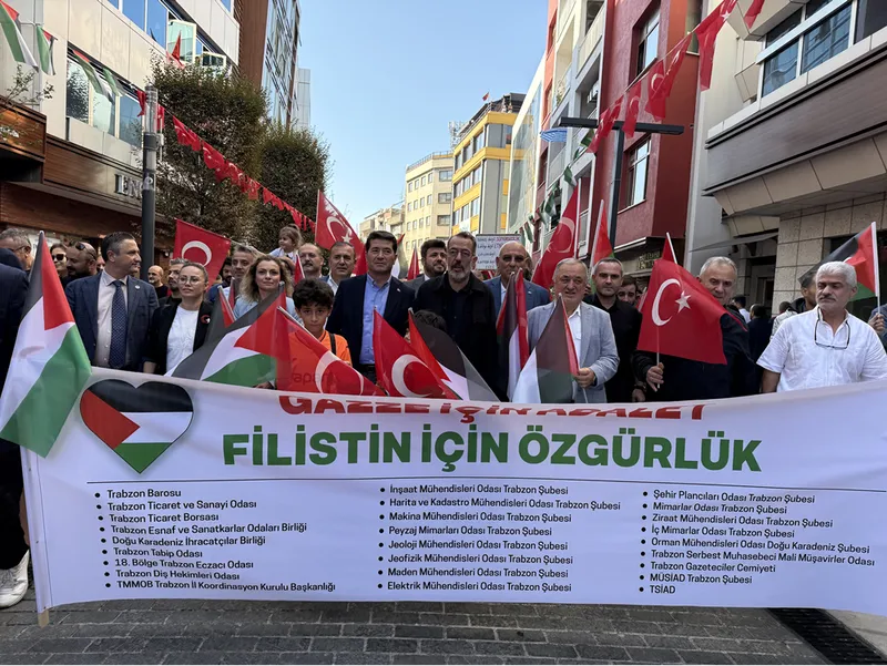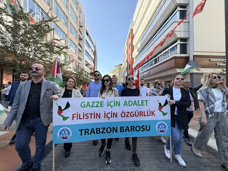 TRABZON (AA) - Trabzon'un Ortahisar ilçesinde meslek odaları ve sivil toplum kuruluşlarınca "Gazze İçin Ayaktayız" sloganıyla yürüyüş organize edildi.