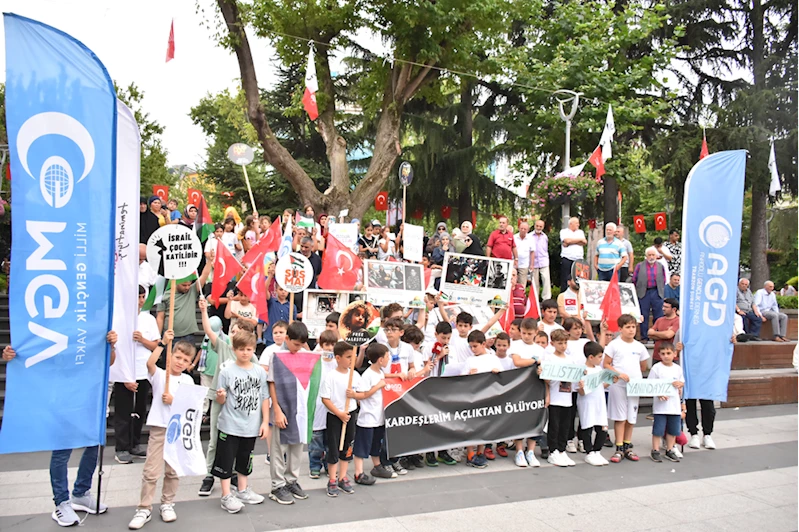 TRABZON (AA) - Trabzon'da, Anadolu Gençlik Derneği (AGD) ve çeşitli sivil toplum kuruluşlarının yanı sıra çocukların katılımıyla İsrail'in Gazze'ye yönelik saldırıları protesto edildi.