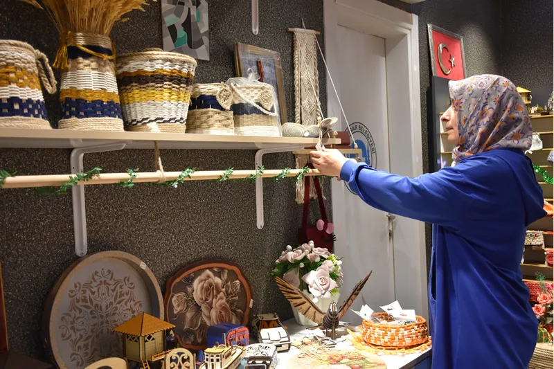 Ev ekonomisine katkı sağlamak isteyen kadınları çarşıya davet eden Tuncer, anahtarlıklardan tablolara kadar 2 binden fazla ürünün satışa sunulduğunu anlattı.