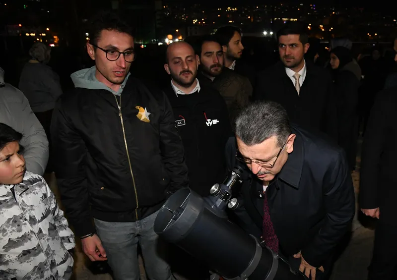 Büyükşehir Belediye Başkanı Ahmet Metin Genç'in de katıldığı etkinlikte açık alanda kurulan teleskoplarla dolunay gözlemi yapıldı.