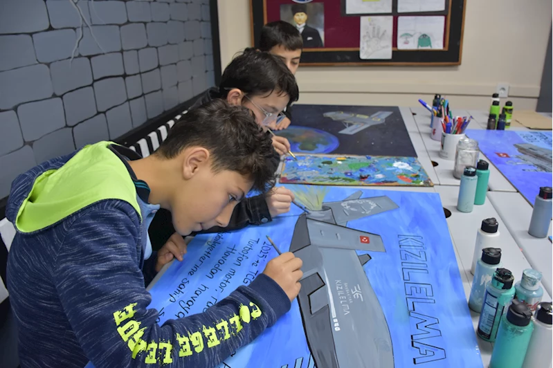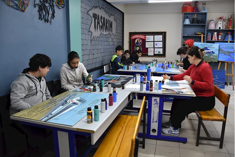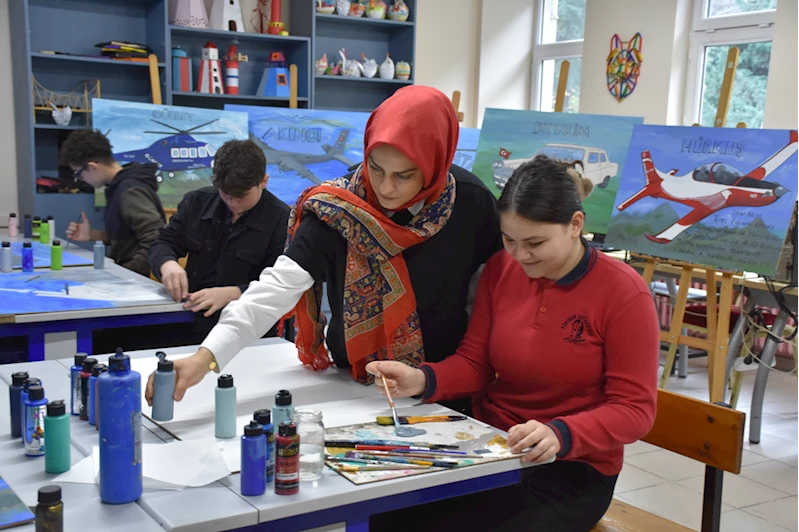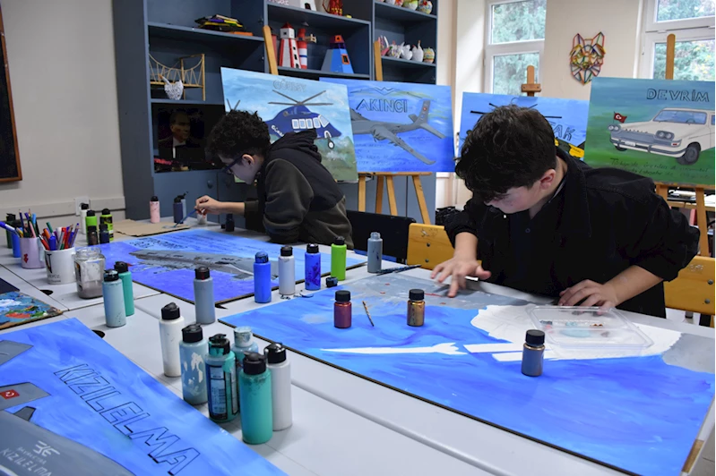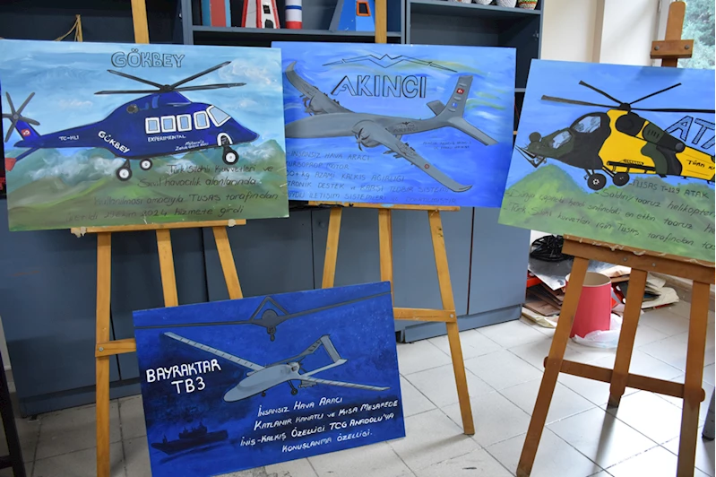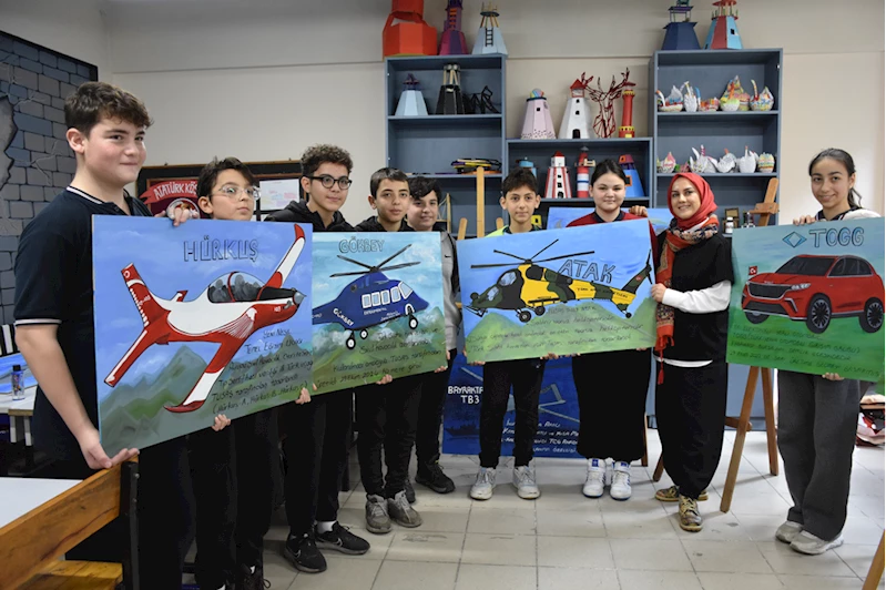 TRABZON (AA) - DUYGU AVUNDUK - Trabzon'da ortaokul öğrencileri, Türkiye'nin yerli ve milli teknoloji ürünlerini tuvale resmetti.