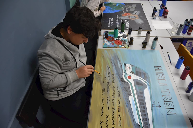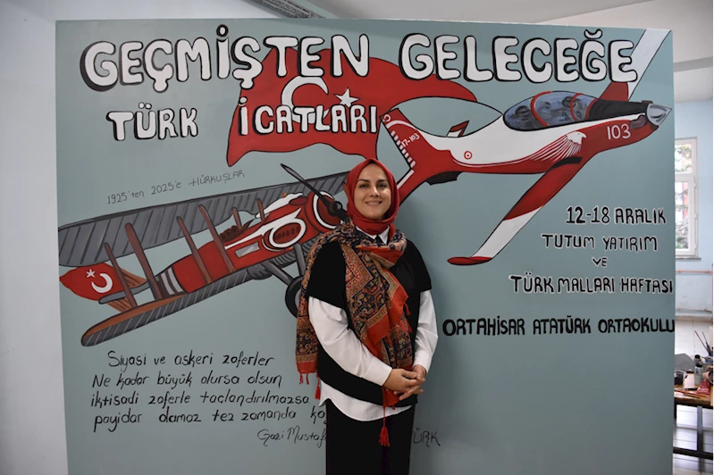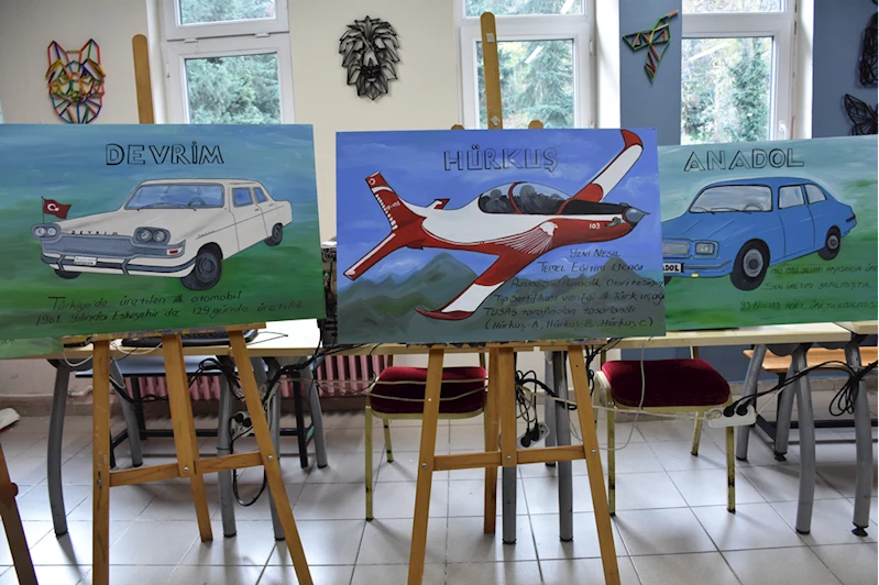 Atatürk Ortaokulu görsel sanatlar öğretmeni Burcu Öncel, Türkiye Cumhuriyeti'nde bugüne dek hayata geçirilen milli ve yerli projeleri öğrencileriyle resmetmeye karar verdi.