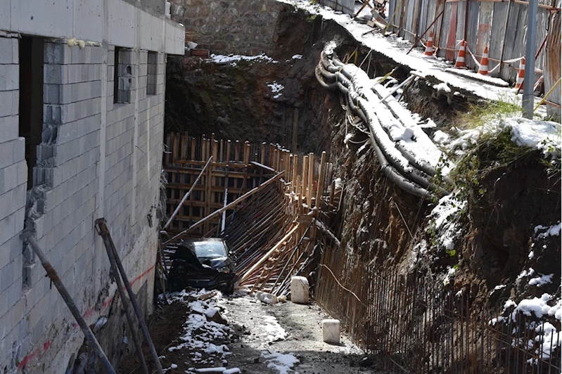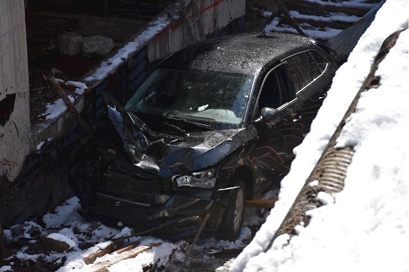 Ortahisar ilçesine bağlı Beşirli Mahallesi'nde N.Ş.A. idaresindeki otomobil, kar nedeniyle kayganlaşan yolda direksiyon hakimiyetini kaybederek inşaat halindeki binanın temeline düştü.