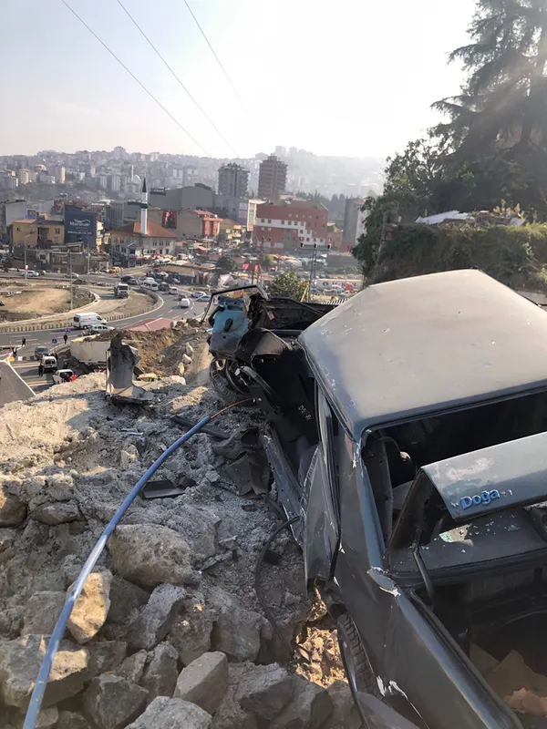 Kamyon, çarpmanın şiddetiyle yaklaşık 10 metre yükseklikten yola devrildi.