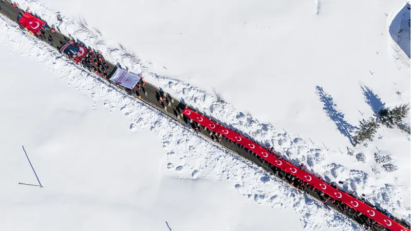 Yürüyüşe katılanlar, 350 metrelik Türk bayrağı ve Atatürk posteri taşıdı.
