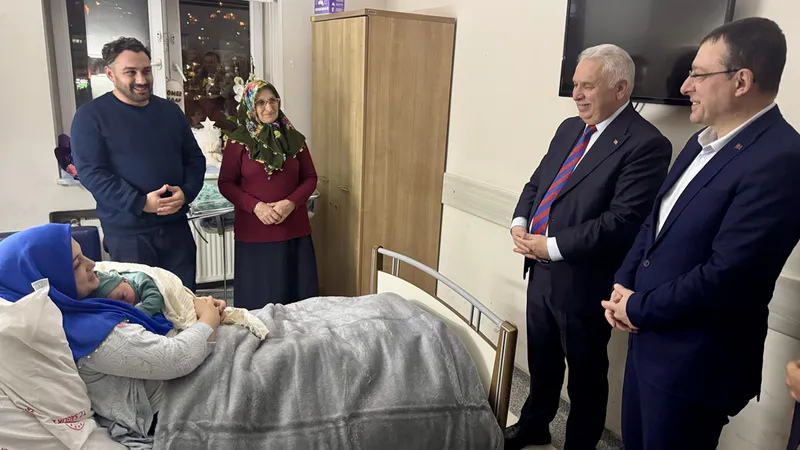 Aileleri hastanede ziyaret eden Trabzon Valisi Aziz Yıldırım bebeklere çeşitli hediyeler ve Trabzonspor forması hediye etti.