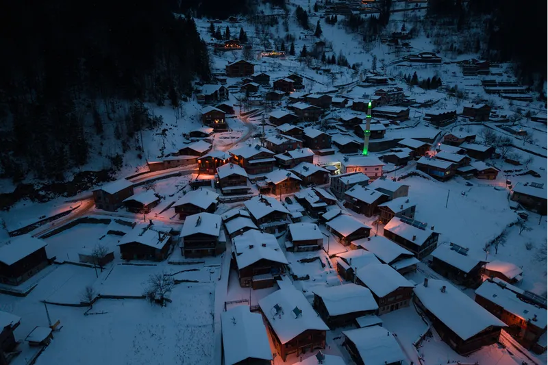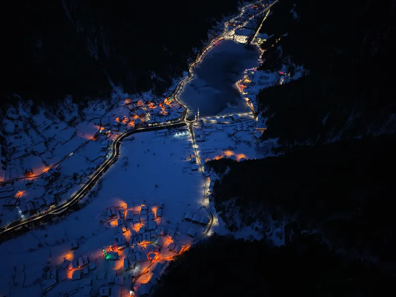Uzungöl ve çevresindeki karla kaplı ormanlar dron ile görüntülendi.