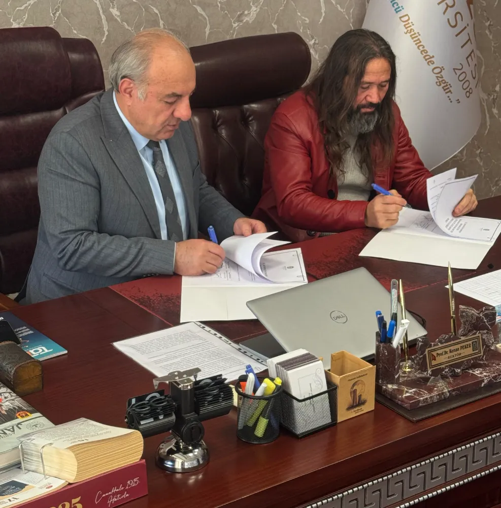 Tunceli Munzur Üniversitesi'ne misafir olarak Rektör Prof. Dr. Kenan Peker ile görüşen Karadeniz Teknik Üniversitesi (KTÜ) Öğretim Görevlisi Engin Ahmet Muhsir ile turizmciler Turan Pervanlar, Koray Pervanlar, Osman Aydın ve Şaban Berk, Rektör Kenan Peker'le Hamsiköy'ün turizmini geliştirmek için stajyer öğrenci protokolü imzaladı.