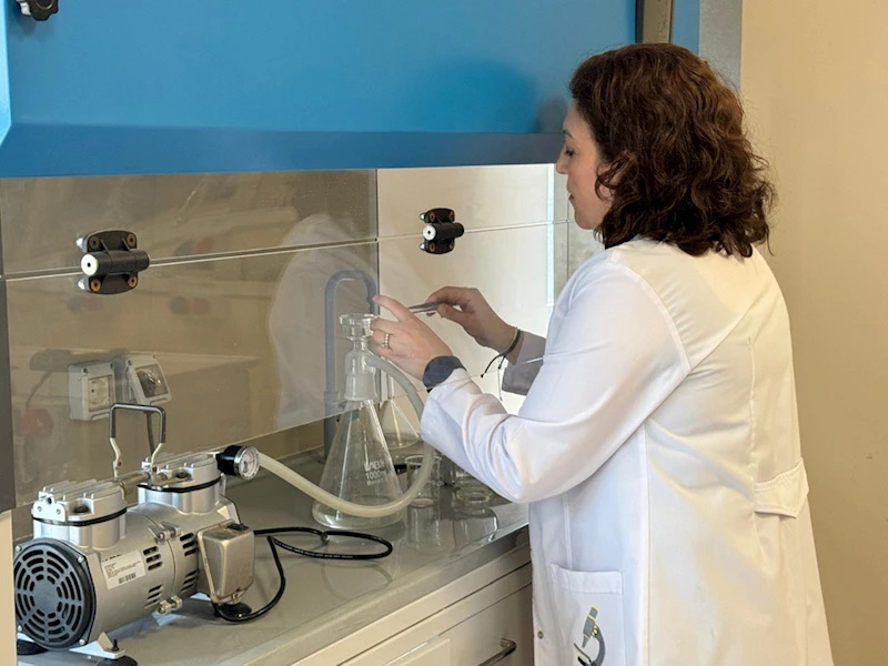 Tepe, titiz bir çalışma yürüttüklerine dikkati çekerek, "Tıp fakültesinden gelen prostat numunelerini ilk etapta yüzde 10'luk potasyum hidroksit solüsyonuna yatırdık. Bir süre sindirme işlemi 'digest' dediğimiz işlemden geçirdik. Daha sonra mikroplastik parçacıklarını bulmak adına filtrasyon sistemimizde filtre ettik. Bu işlemler yapılırken mikroplastiklerin bulaşmasını önlemek adına titiz çalışma yaptık." dedi.