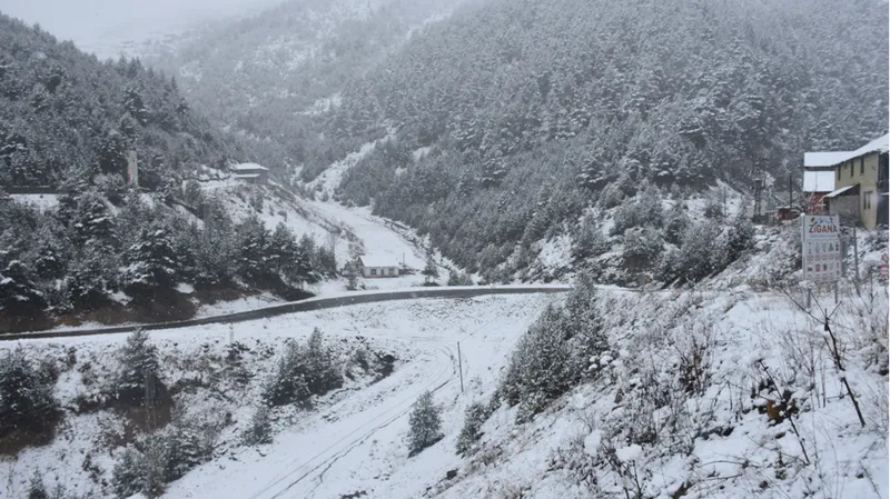 GÜMÜŞHANE (AA) - Gümüşhane'nin Torul ilçesi sınırlarında, Trabzon-Gümüşhane kara yolu güzergahındaki Zigana Dağı, sabahtan itibaren devam eden karla beyaza büründü.